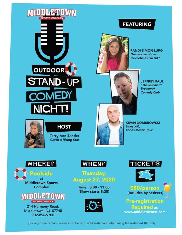 Outdoor Stand-Up Comedy nights featuring NY/NJ regional and headline comedians! Pre-registration required.